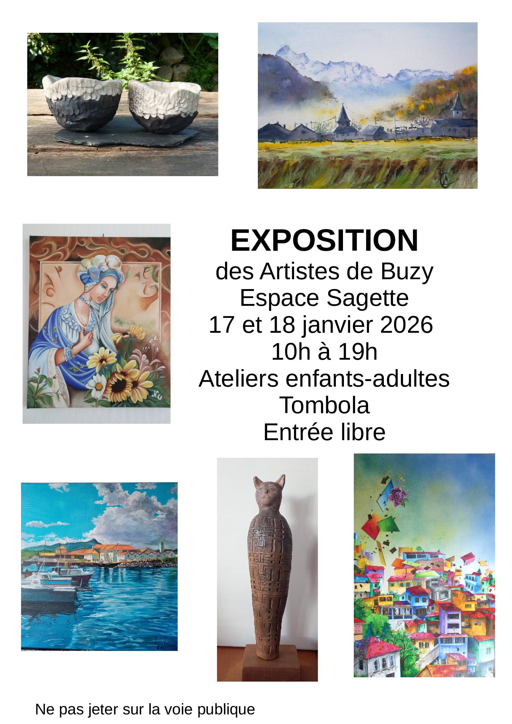 La 9ème édition de l’exposition des Artistes de Buzy se déroulera à l’Espace Sagette les samedi 17 et dimanche 18 janvier de 10h à 19h.